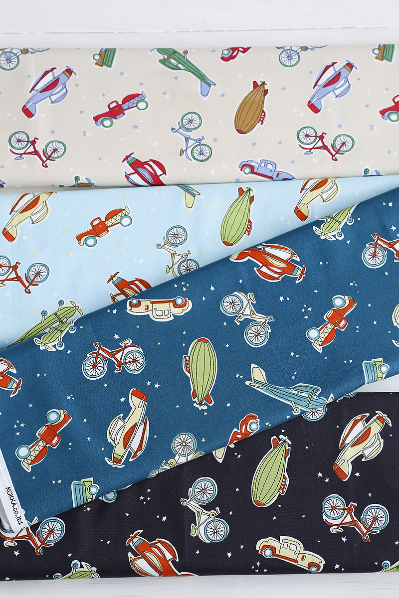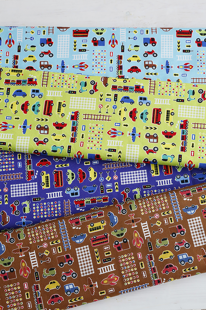 This fabric has designs of hand-drawn vehicles with a slightly nostalgic touch. It would possibly be nice to be chosen by moms who are not too excited about using fabrics that are too colorful and cute. Since this fabric does not look too childish, why not make an item for an adult like a matching bag?