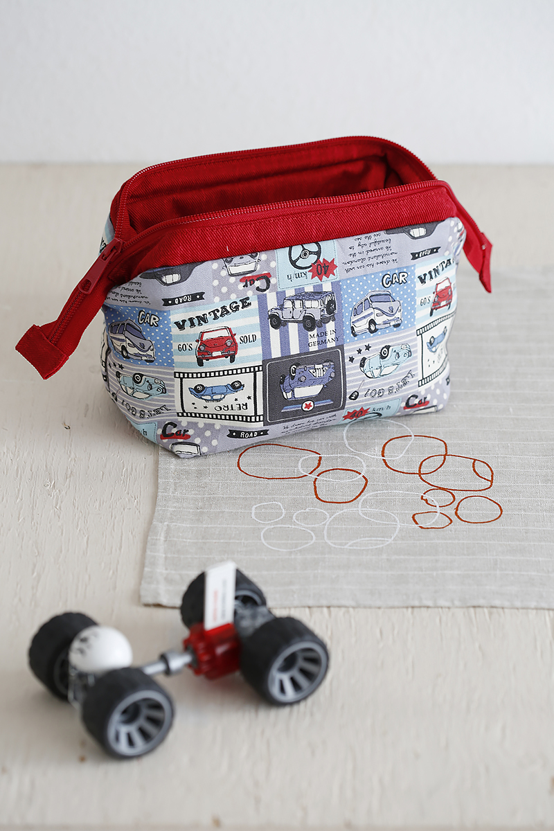 All-terrain vehicles and buses… a variety of cars are sprinkled like a patchwork on this fun print. Depending on the color combination, it can look fresh or retro.