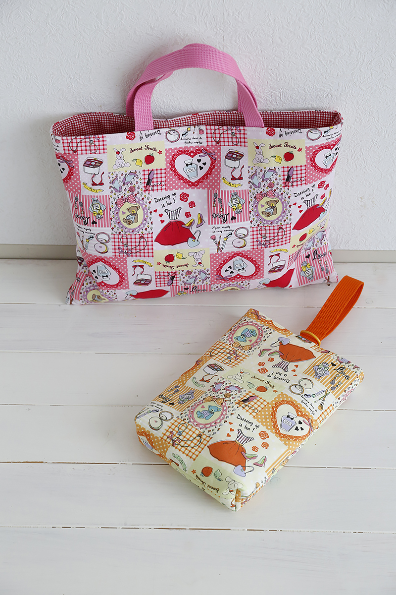 Trefle is a series of fabrics that feature boys’ favorite items like vehicles and the girls’ favorite items like cosmetic goods and sweets as design motifs. Developed with the idea that this fabric is for making items for a new school year, it is perfect for creating such bags as a lesson bag and a bag for shoes as well as for clothing like a smock.