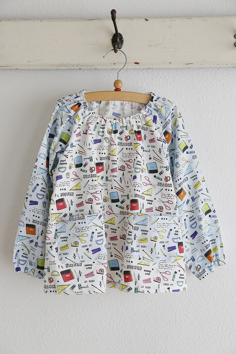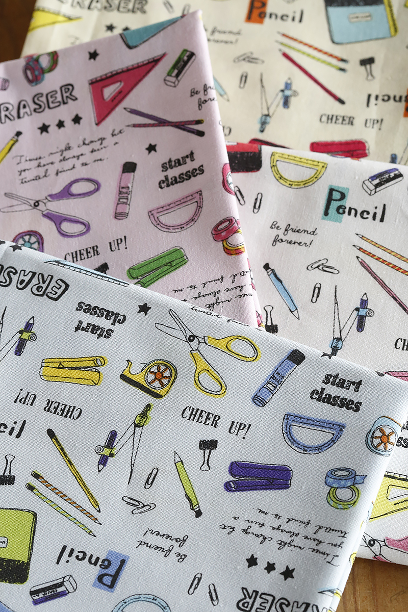 This print features all kinds of stationery as design motifs. Depending on the color combination, this could be used for both boys and girls. The design accent is English letters written in a hand drawn touch.