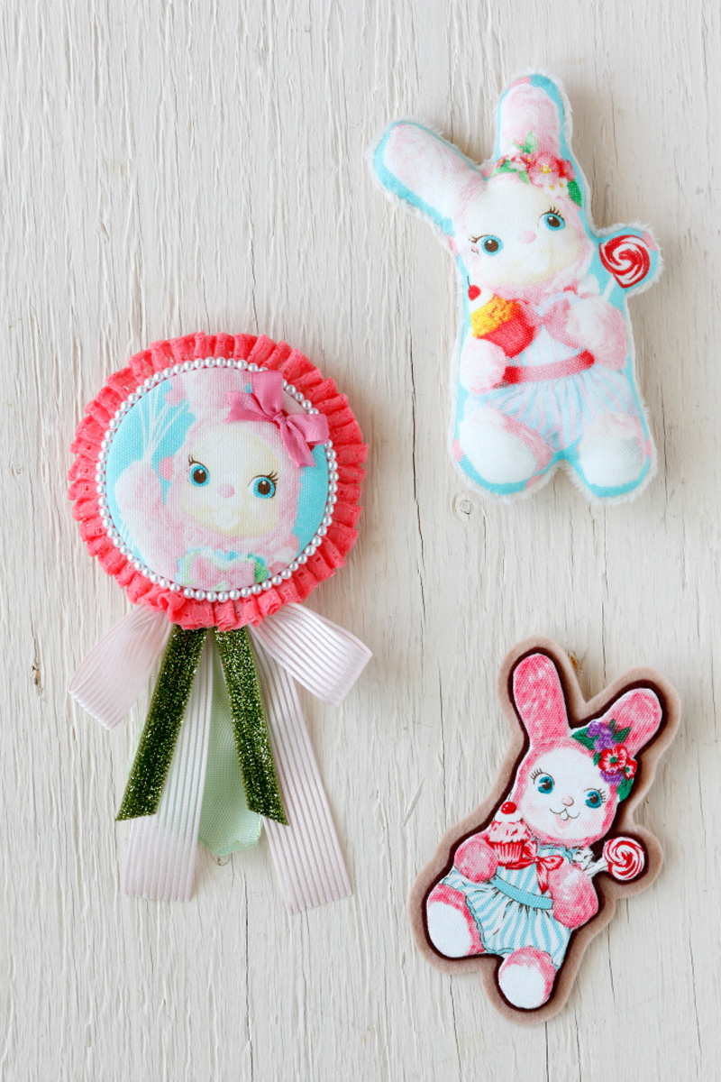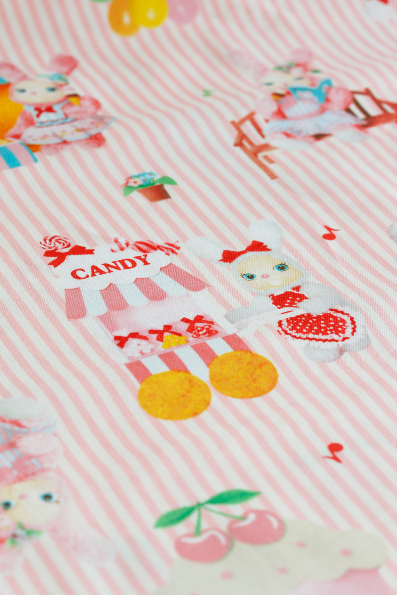 Sweet Dream is a polka dot design fabric with pink Usaron and white Usaron. “Three color schemes let both Usaron and polka dots stand out. It fits well with Usaron’s image. I hope Usaron’s lovely smile will cheer you up.” (by Saki Yamashita)
