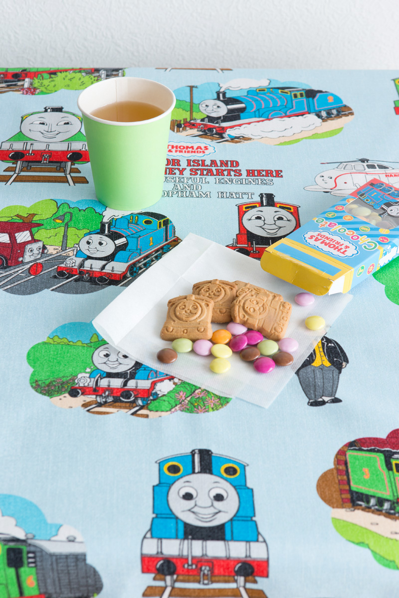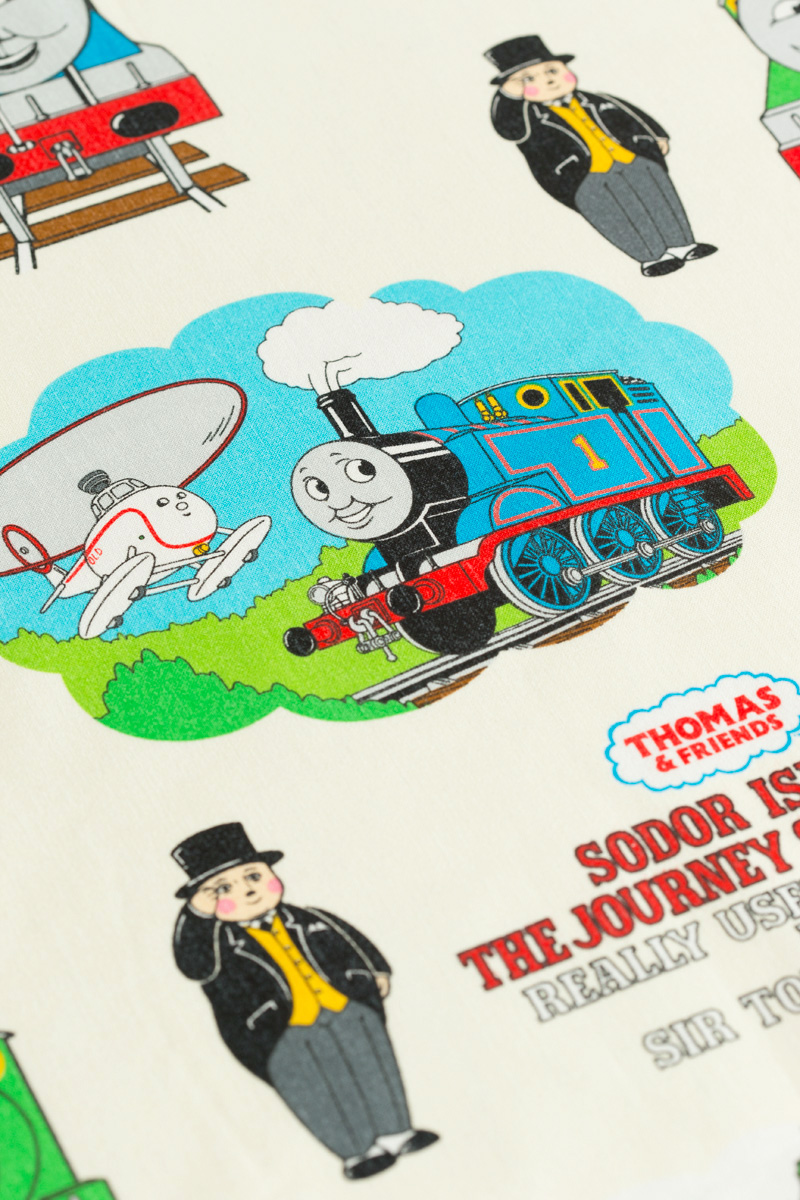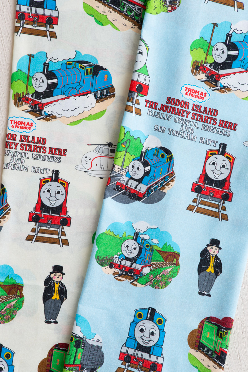 In order to create a vintage look, this fabric is printed in a blurry style called sericite. It is a fabric that delivers a lovely image of the Thomas character.