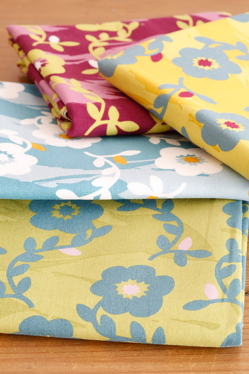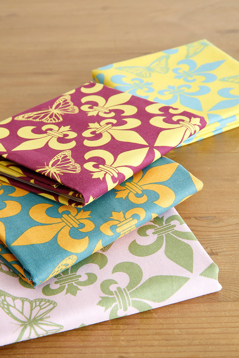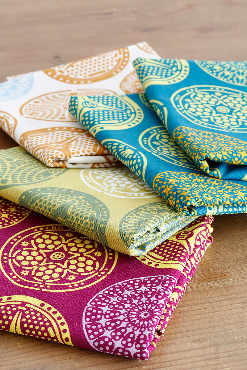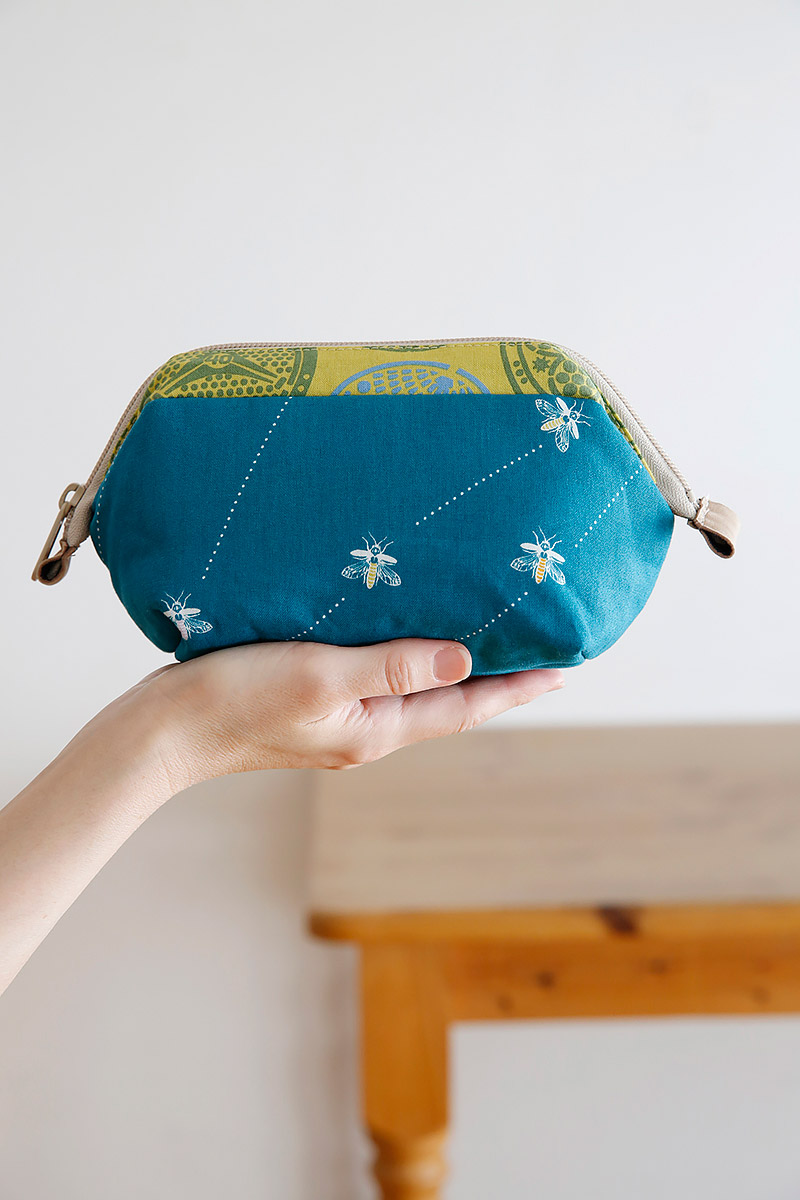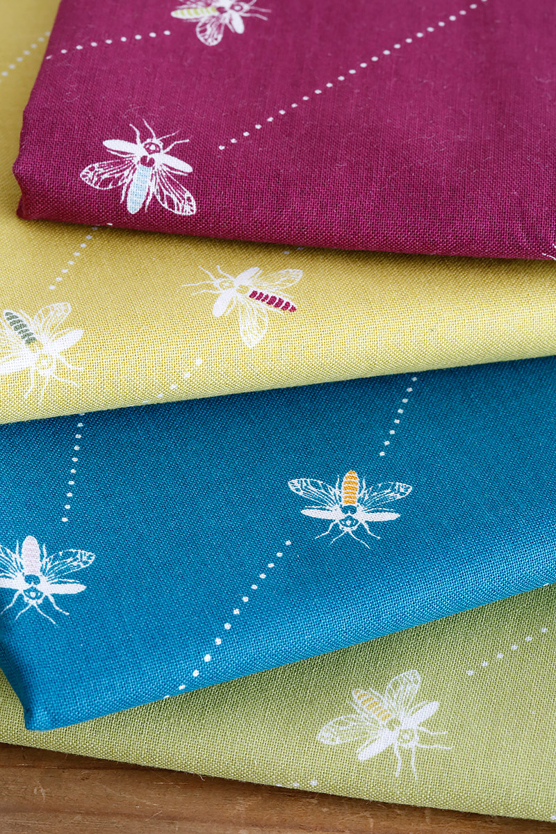 The motif of this design is a small bee, and it is perfect to be combined with large design fabrics or used as an accompaniment. The deeper color tone works as an accent to other fabrics of this series. The bee’s trails look almost like a geometric design, and even the single use of this fabric can create a stylish piece. It is a perfect fabric for small items like a pouch.