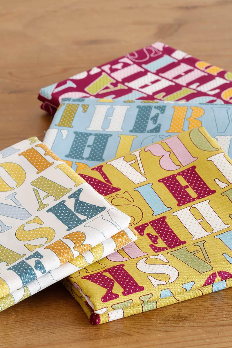 The charm of this design are the polka dots inside the letters. Though this series was created for a patchwork, the modern look of the fabric will add stylishness to items like a clutch bag and a triangular pouch.
