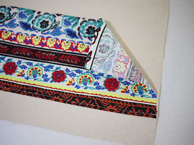 口側を三つ折りにしアイロンで折り目をつけます。2枚同様に。