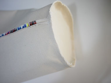口布を本体の内側に入れた状態で口側を一周ステッチします。