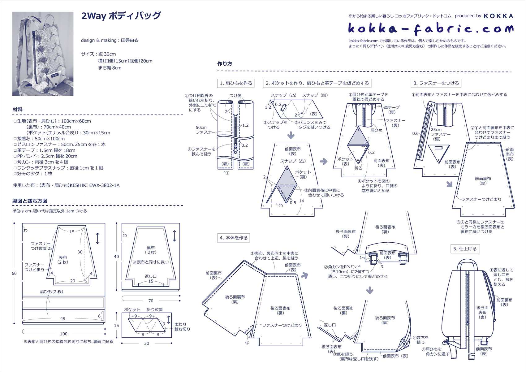 KF:田巻さん、どうもありがとうございました!2wayボディバッグの作り方プロセスも田巻さんに撮影していただきましたので、ぜひ、作り方シート(PDF)と合わせて参考にしてくださいね。