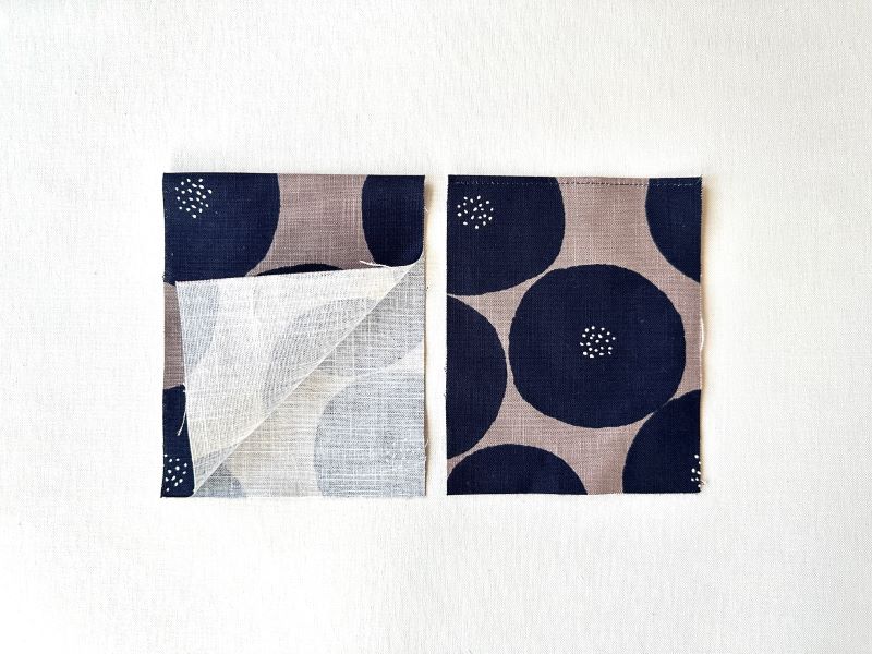 表布と底布を中表に合わせて縫います。縫い代を底側に倒してステッチをかけます。