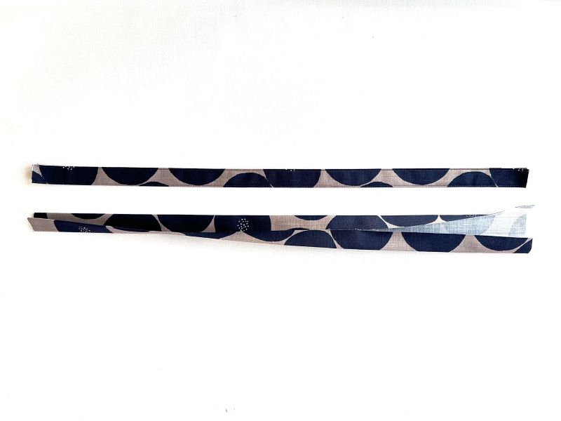 持ち手布を外表に四つ折りにして両辺を縫います。