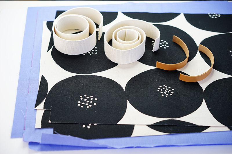 直線縫いで簡単です!革テープや持ち手の部分は厚みがでるのでゆっくり縫うとよいと思います。