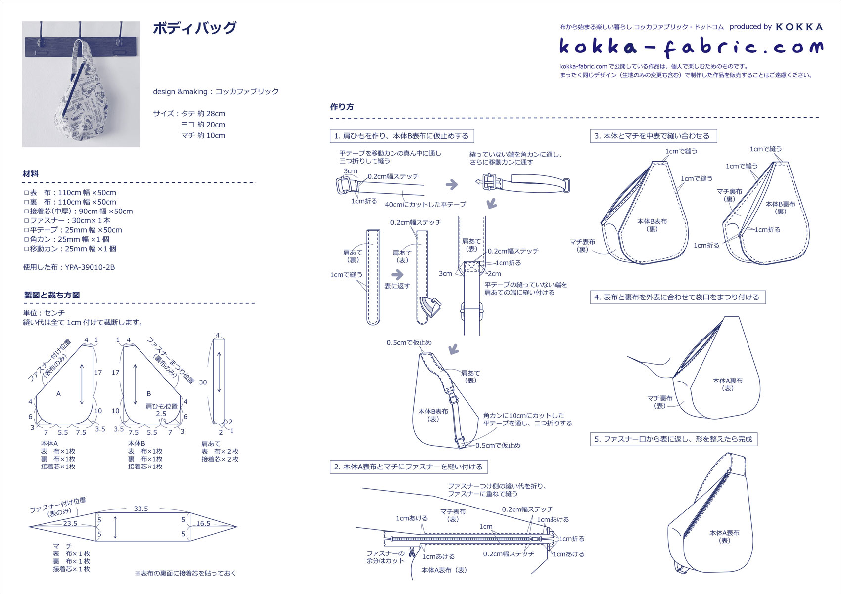 斜めがけできるボディバッグの作り方