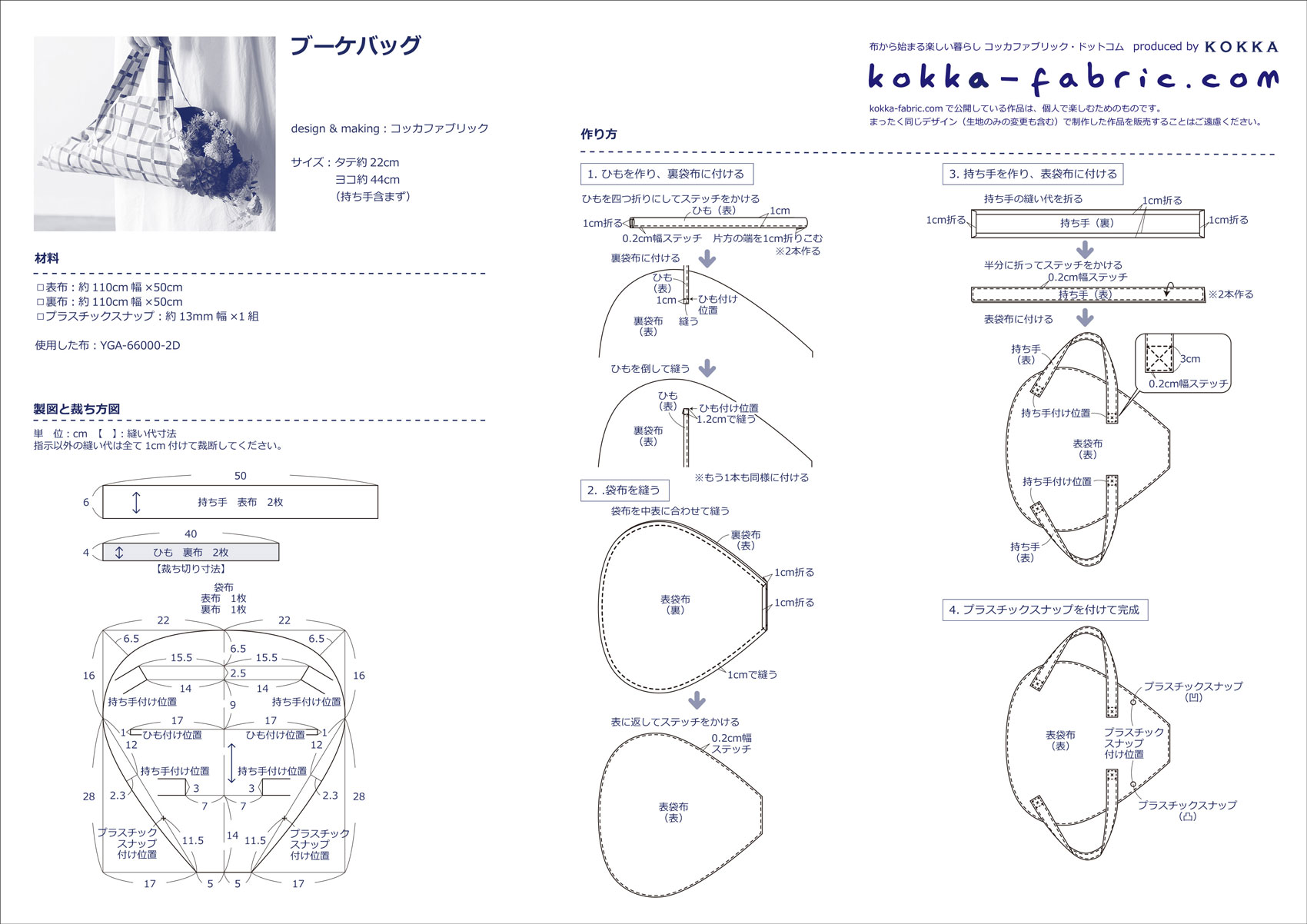 ブーケを入れて持ち歩けるバッグです。使った布は「Le Bouquet」シリーズ。綿麻キャンバスなのでバッグづくりにおすすめです。