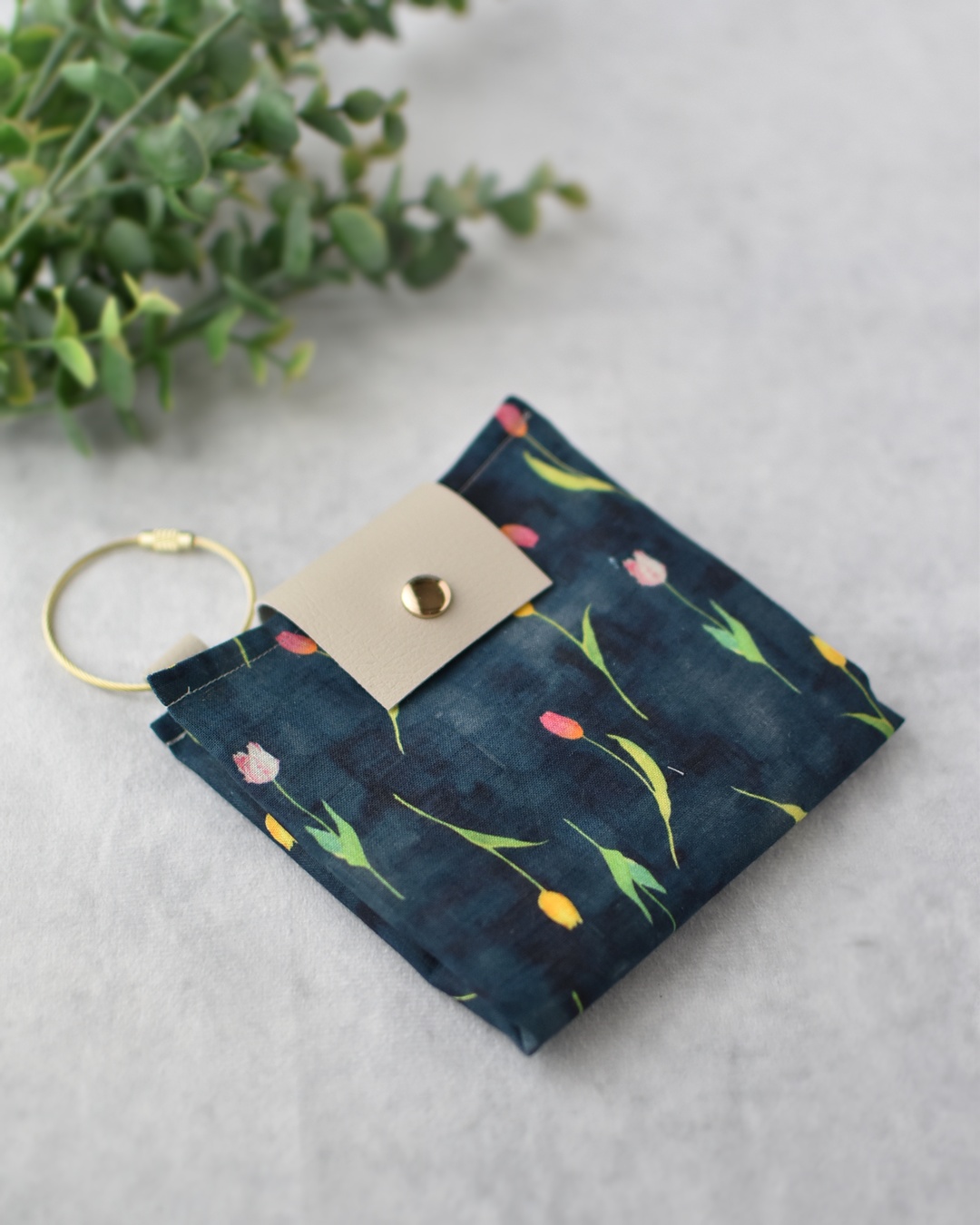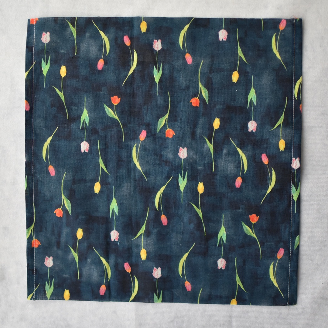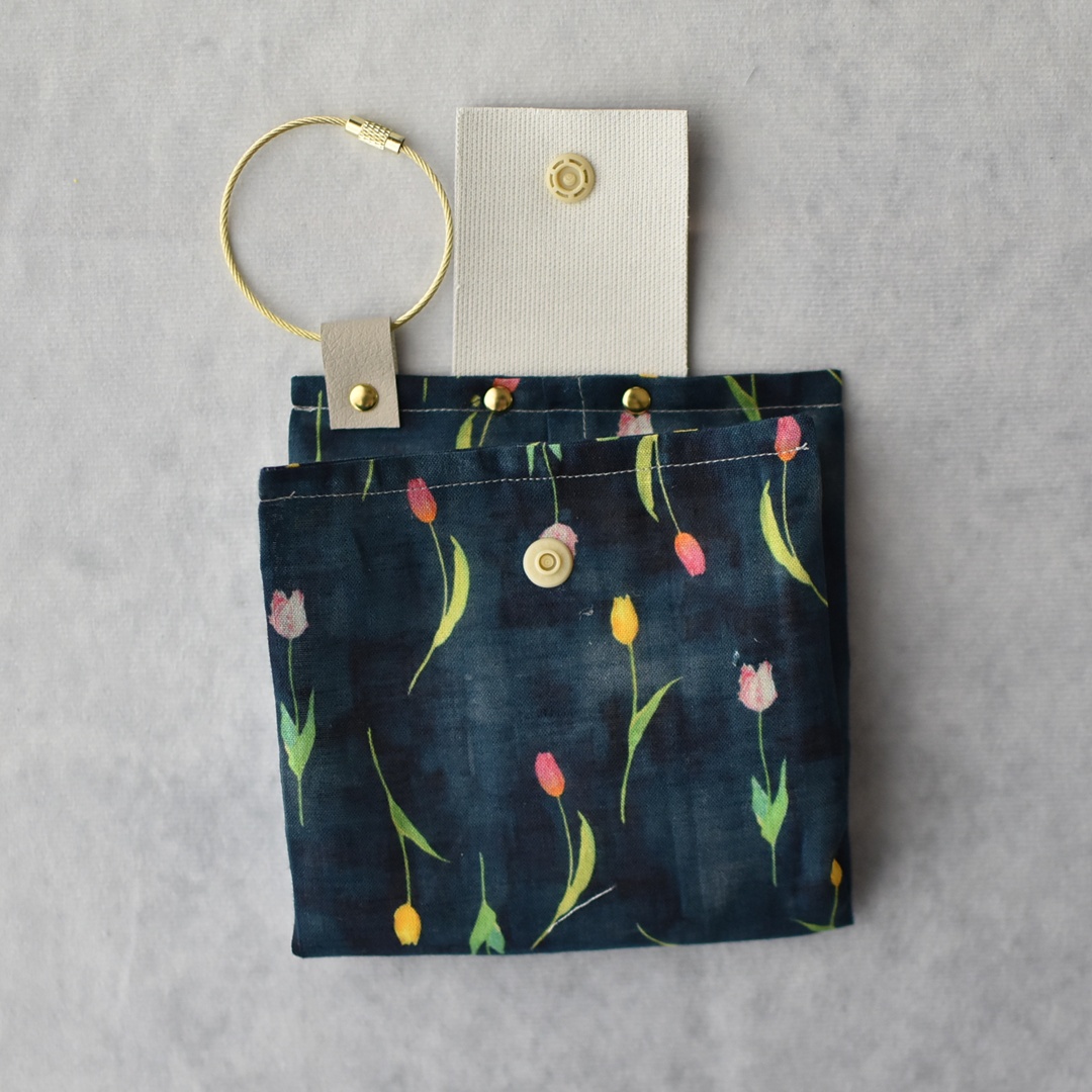yuiシリーズの大ファンなので、今回のチューリップ生地もとても楽しみにしていました。水彩画の優しい絵のタッチがとてもステキで、シャリっとした手触り、バッグの中に入れておくと心がふわっとする布小物を作りました。