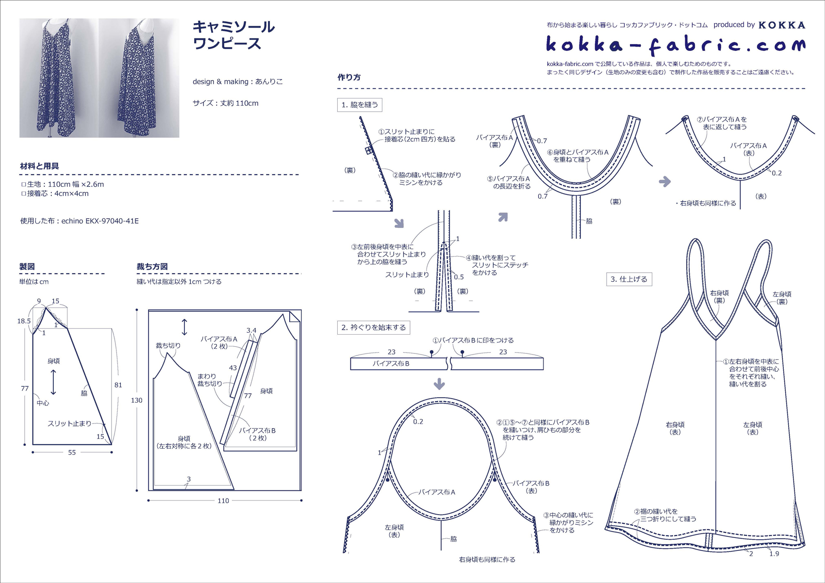 KF:あんりこさん、どうもありがとうございました!キャミソールワンピースの作り方プロセスもあんりこさんに撮影していただきましたので、ぜひ、作り方シート(PDF)と合わせて参考にしてくださいね。