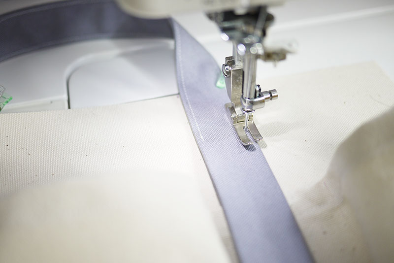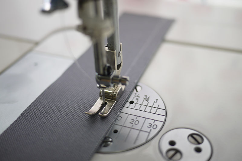厚みのある部分ができますので、段差が大きいところは厚紙などを押さえの下に挟み、できるだけ押さえが斜めにならないようにして、ゆっくり縫います。