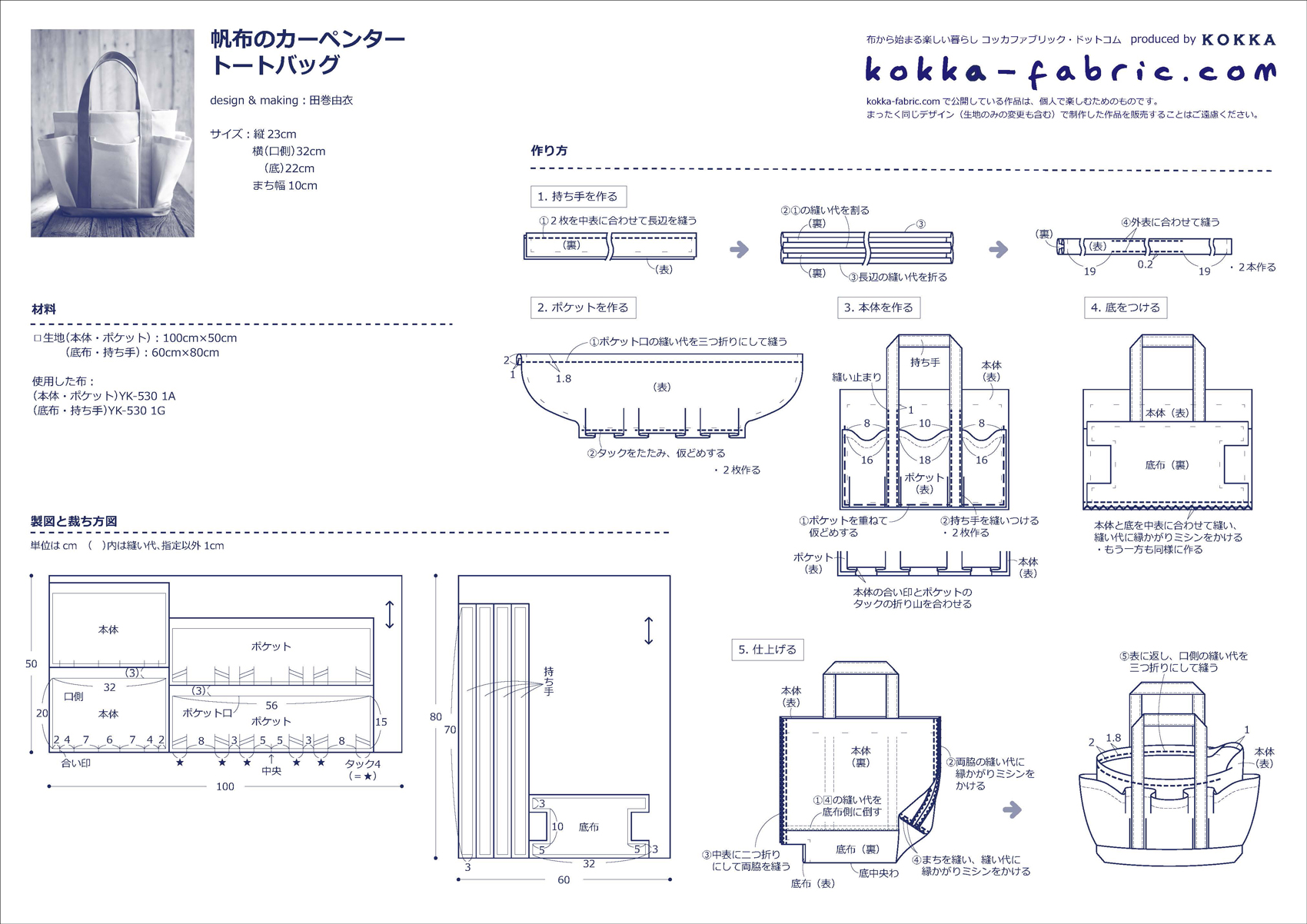 KF:田巻さん、どうもありがとうございました!帆布のカーペンタートートバッグの作り方プロセスも田巻さんに撮影していただきましたので、ぜひ、作り方シート(PDF)と合わせて参考にしてくださいね。