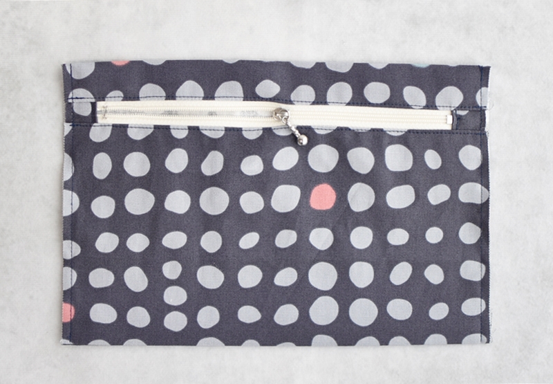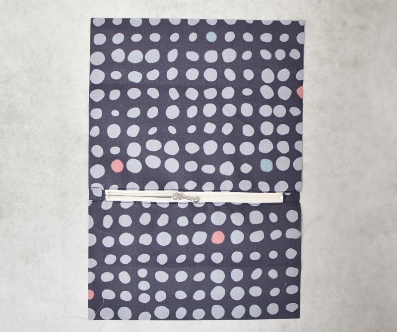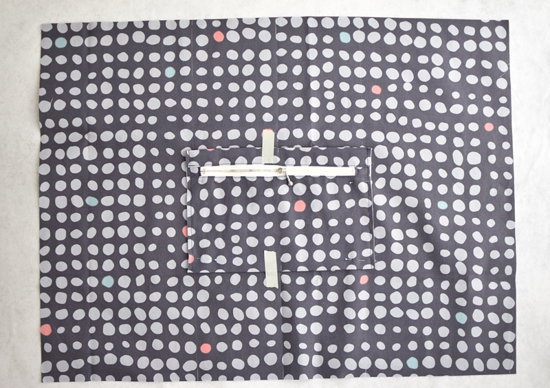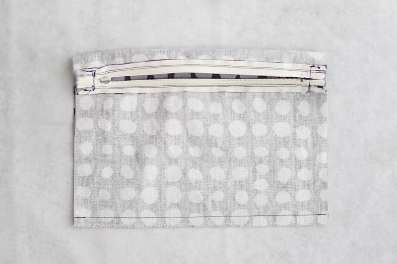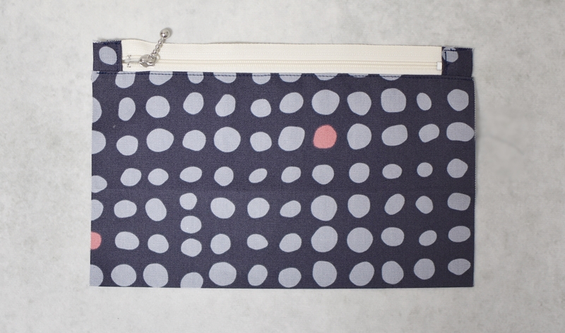 ポケット後ろ面も同様にファスナーと縫い合わせます。