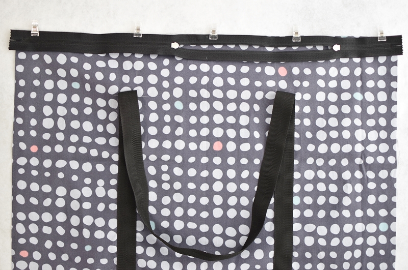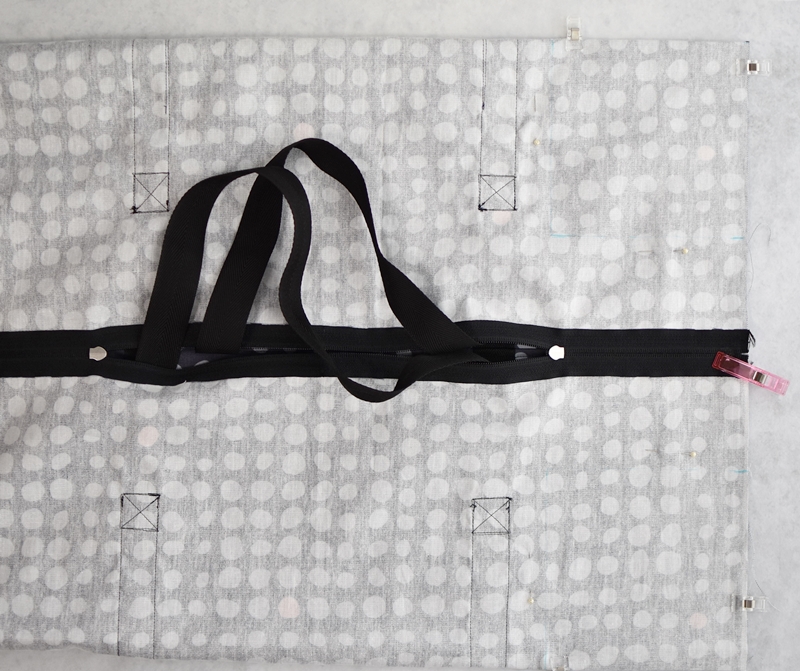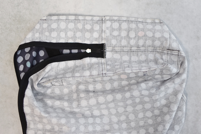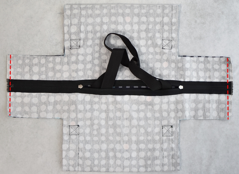 本体と両開きファスナーを縫い合わせます。