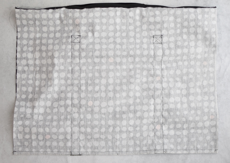 本体に縫いつけます。工程5で仮縫いした左右の縫い目の上を縫います。