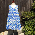 肩から落ちるデザインでストンと着れるワンピースにしました。袖ぐりのラインがきれいに出るよう、直線裁ちはせず、バイアステープでアクセントにしてあります。