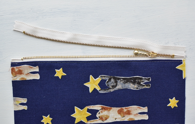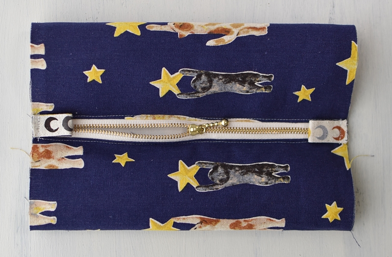 反対側も同様にファスナーをつけ、表からステッチを入れます。