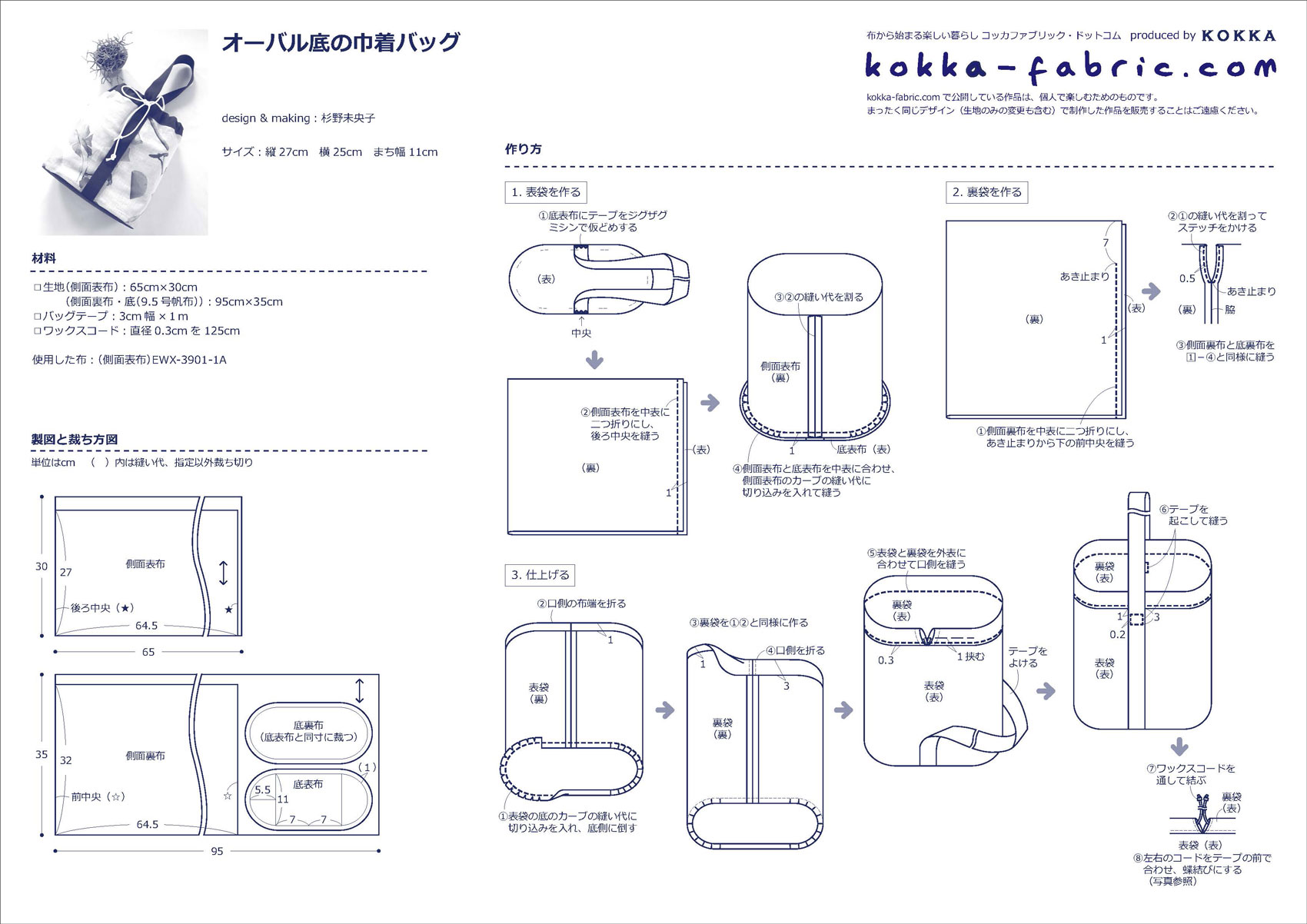 KF:杉野さん、どうもありがとうございました!オーバル底の巾着バッグの作り方プロセスも杉野さんに撮影していただきましたので、ぜひ、作り方シート(PDF)と合わせて参考にしてくださいね。