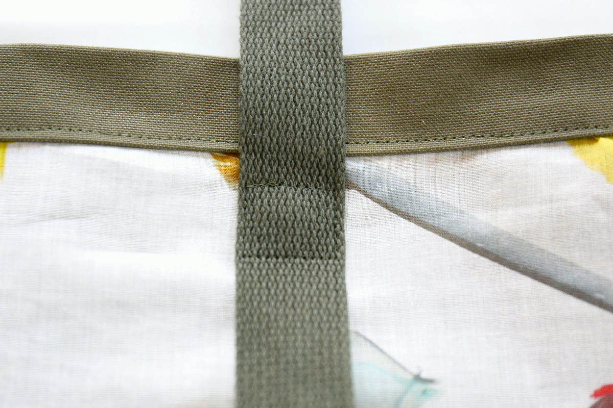 色柄をしっかり見せたかったので、底、内側に9.5号帆布を使って形をしっかり出して、面として柄がよく見えるようにしました。