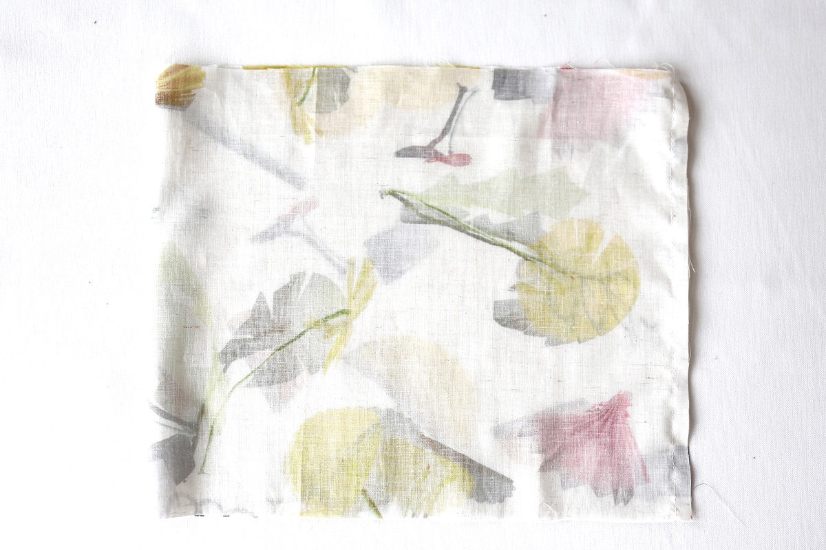 側面表布を中表で半分に折り、縦辺を縫います。