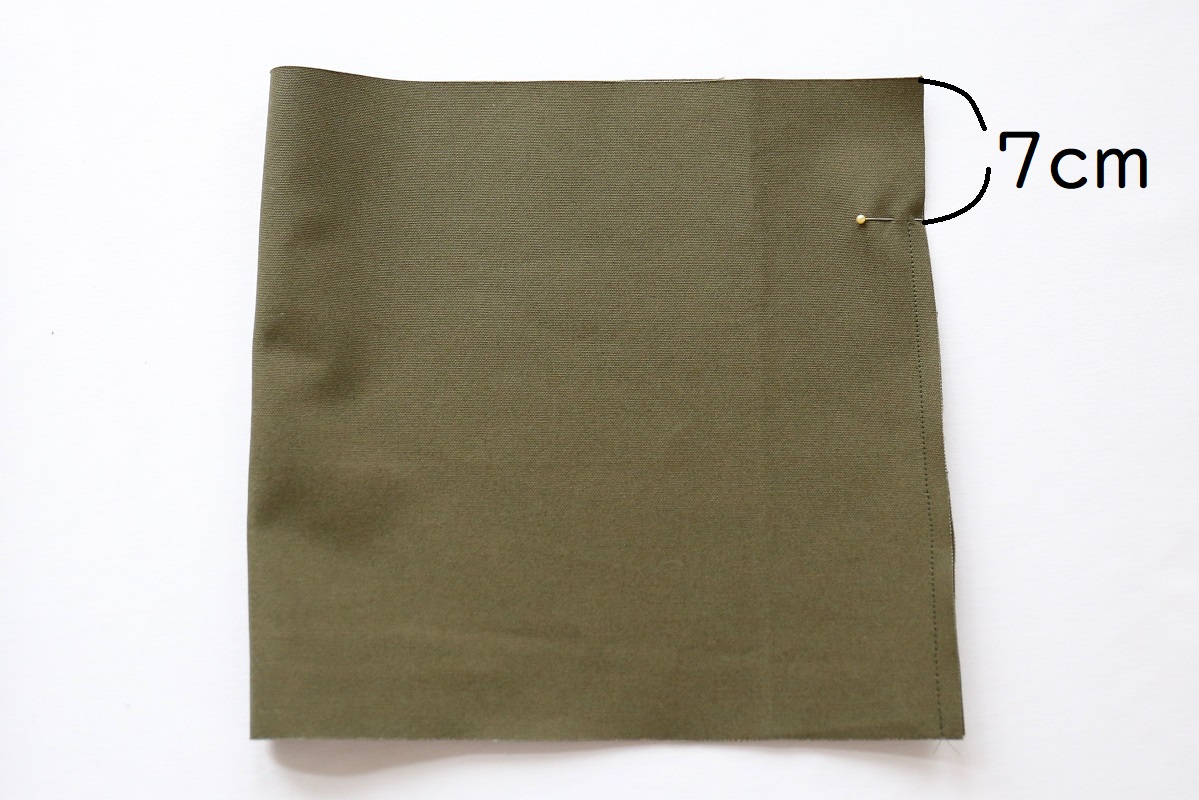 裏布の上から7cmを残して、縦辺を縫います。