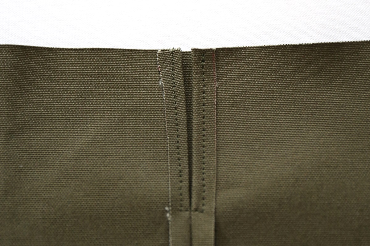 テープを上側へ伸ばし、四角く縫いとめます。※両側とも。