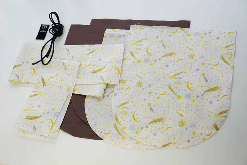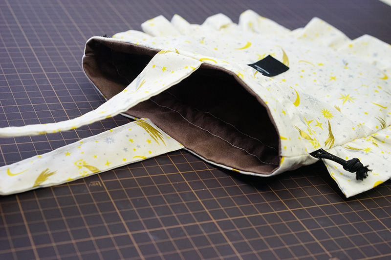 星や星座がちりばめられたかわいい柄で、お子様の入園グッズなどにもぴったりですが、ゴールドのインクがキラっと光るので、大人っぽくも使えそう!と思いました。巾着を作るのに丁度良い厚みでしたので、持ち手付きの便利な巾着バッグに仕立てました。