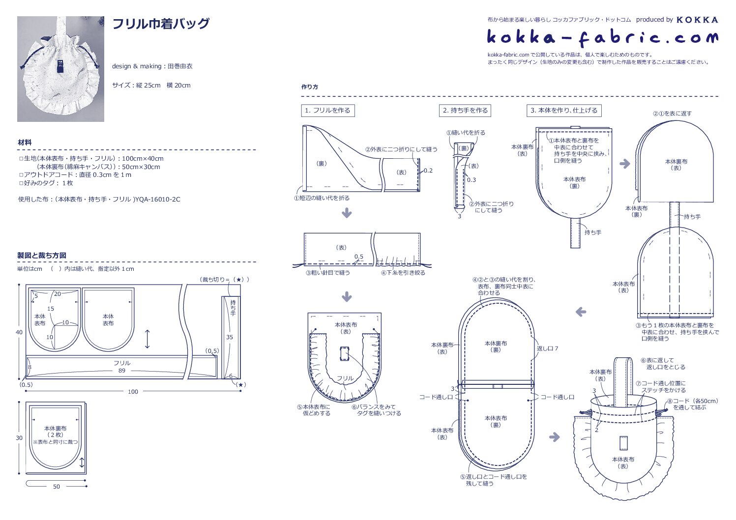 KF:田巻さん、どうもありがとうございました!フリル巾着バッグの作り方プロセスも田巻さんに撮影していただきましたので、ぜひ、作り方シート(PDF)と合わせて参考にしてくださいね。