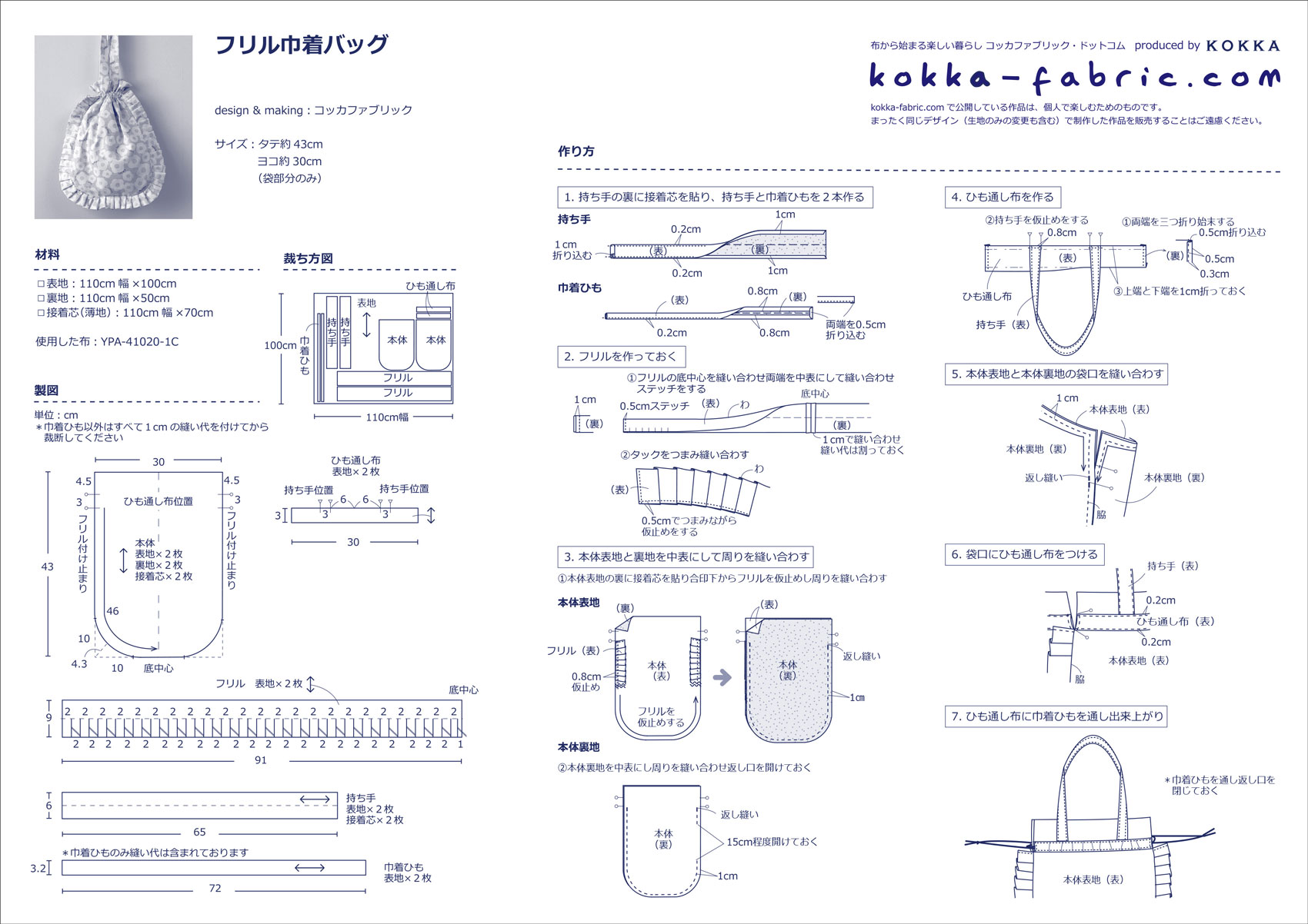 ぐるっとつけたフリルがかわいい♪ フリル巾着バッグの作り方