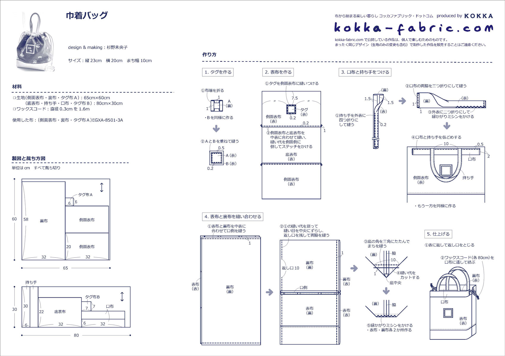 KF:杉野さん、どうもありがとうございました!巾着バッグの作り方プロセスも杉野さんに撮影していただきましたので、ぜひ、作り方シート(PDF)と合わせて参考にしてくださいね。