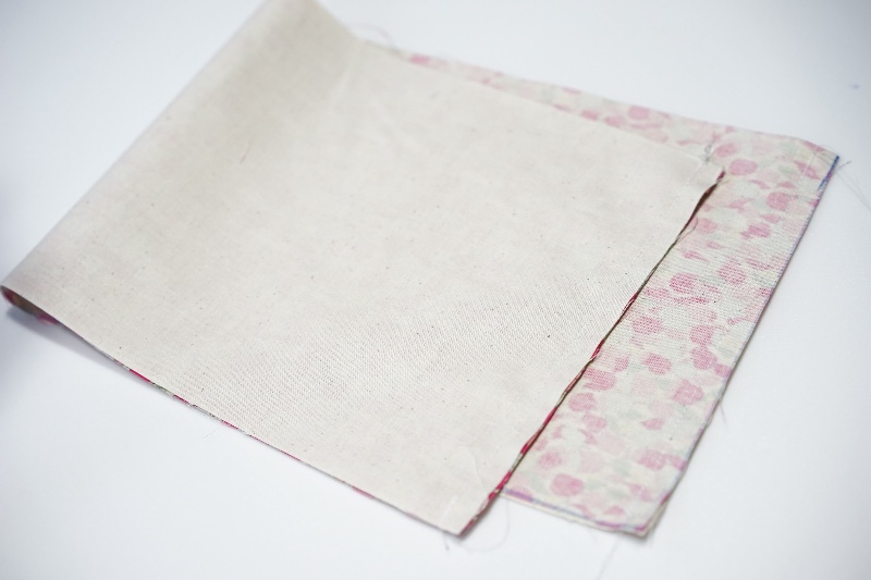 表布と裏布を中表に合わせ、両端(入れ口側)を縫います(縫い代1cm)