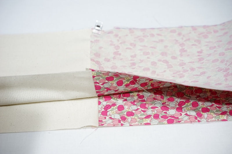 縫い代を裏布側に倒しアイロンでおさえ、縫い目をぴったり合わせて仮止めします。