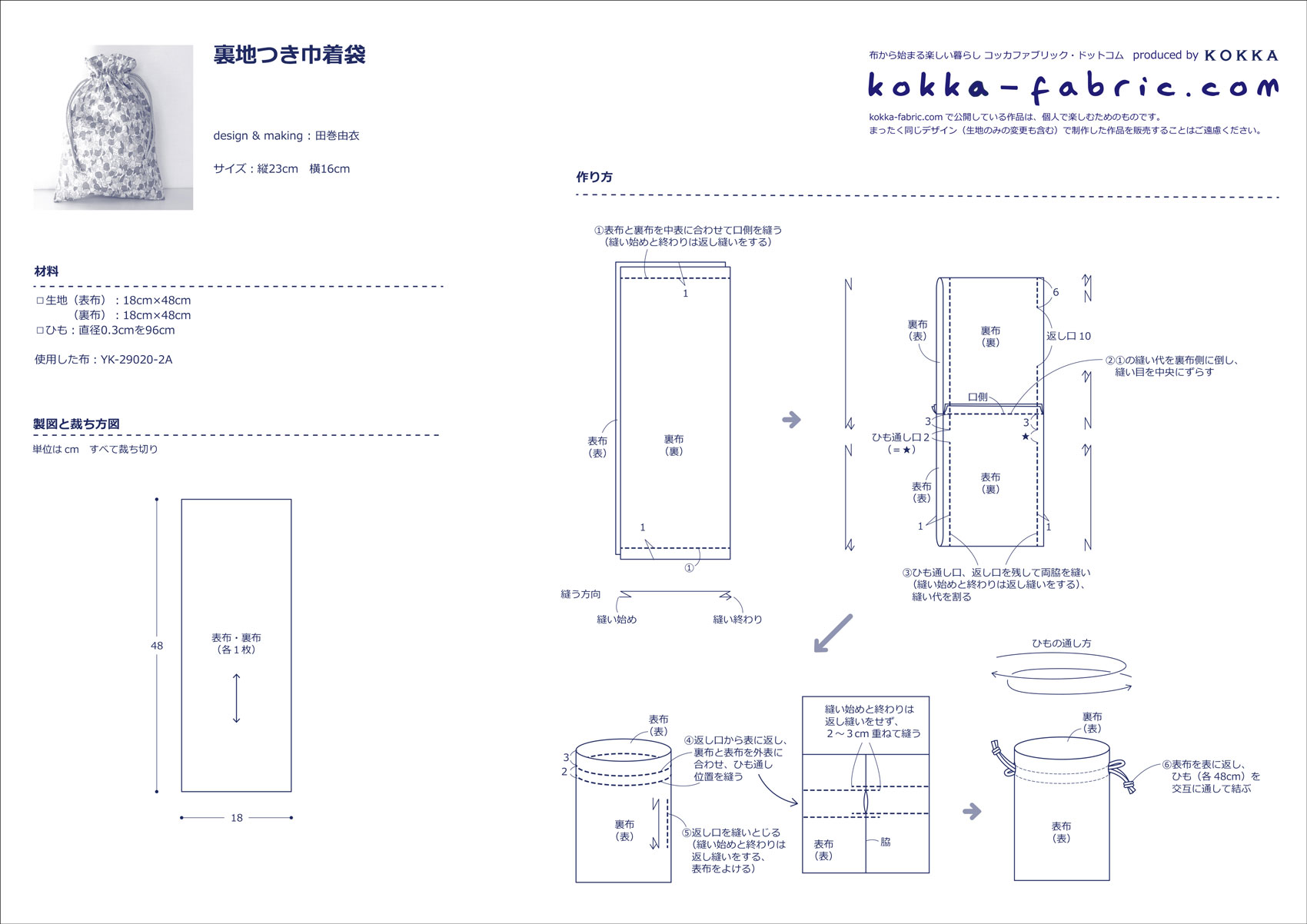写真で解説! 裏地つき巾着袋の作り方