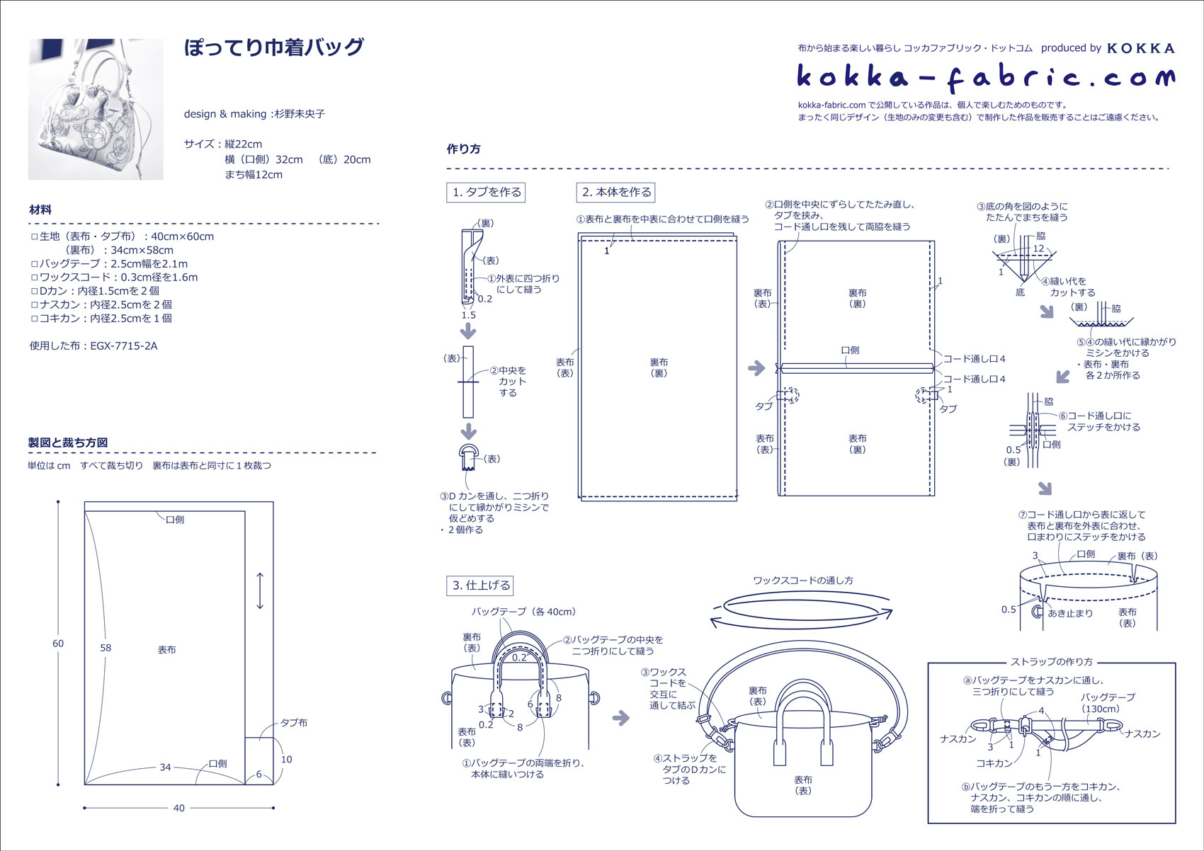 KF:杉野さん、どうもありがとうございました!ぽってり巾着バッグの作り方プロセスも杉野さんに撮影していただきましたので、ぜひ、作り方シート(PDF)と合わせて参考にしてくださいね。