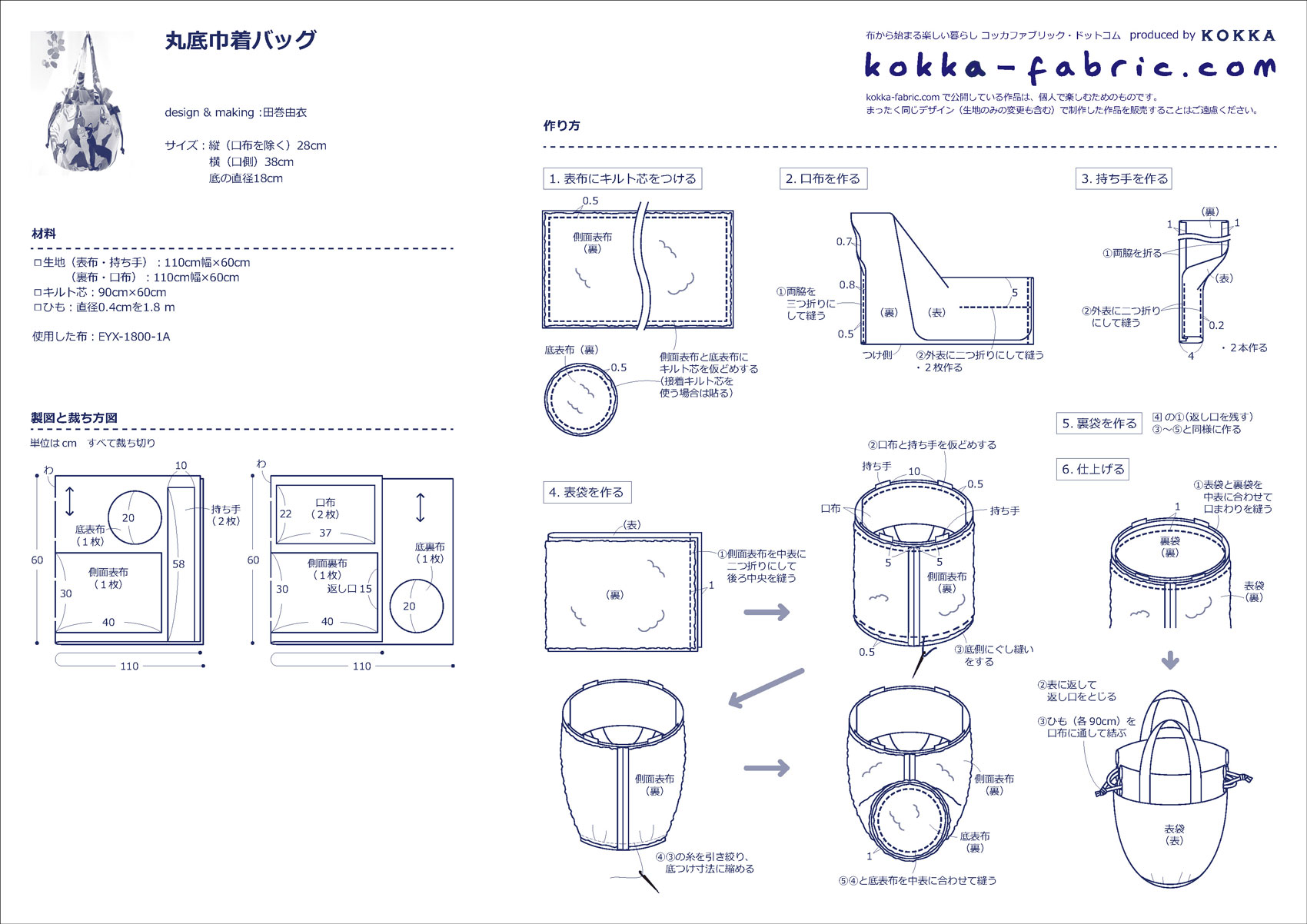 KF:田巻さん、どうもありがとうございました!丸底巾着バッグの作り方プロセスも田巻さんに撮影していただきましたので、ぜひ、作り方シート(PDF)と合わせて参考にしてくださいね。