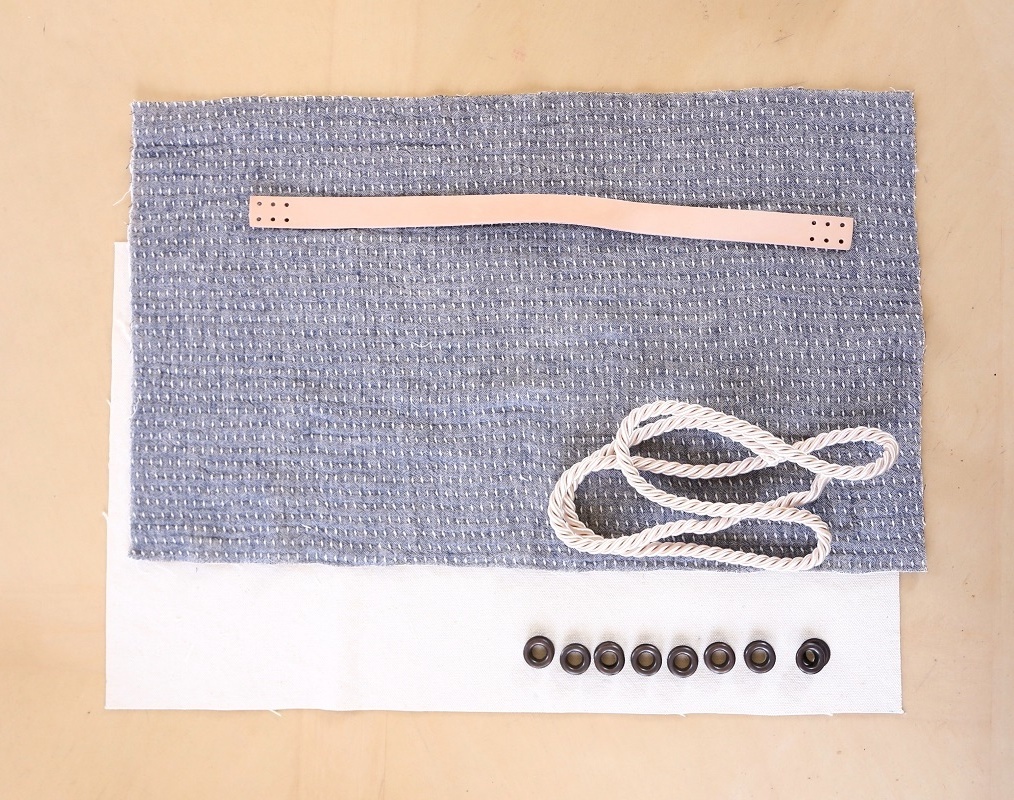 ダブルガーゼで柔らかいのですが、厚みもあってしっかりめです。さらに帆布を合わせることで、柔らかさとしっかりとを合わせもった巾着バッグに仕上げました。ハンドルをレザーにし、ハトメ、ロープなども使ったので洋の雰囲気にも似合います。