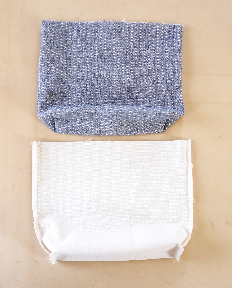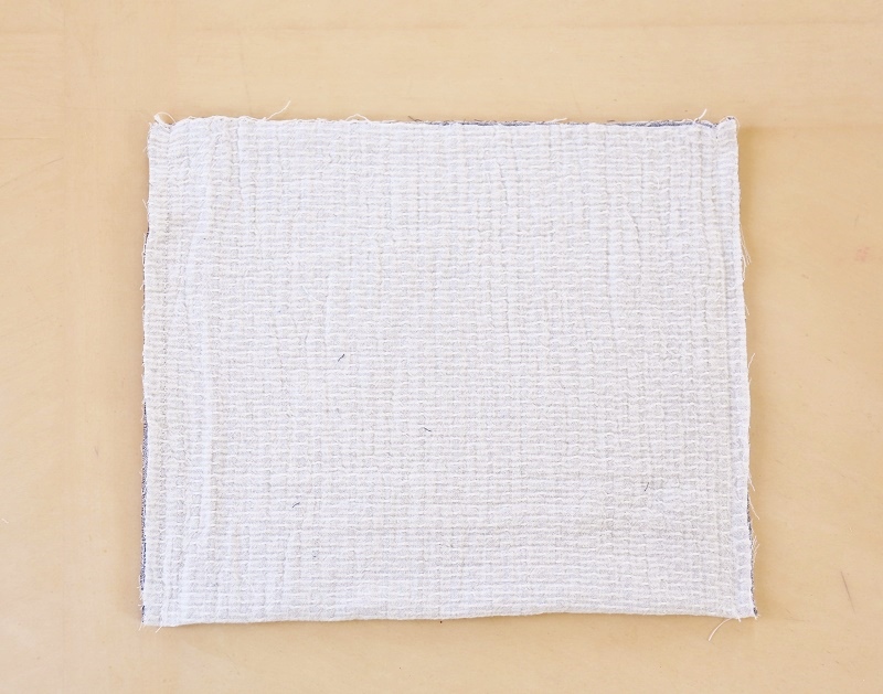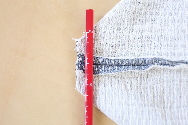 マチを6㎝とって縫い、余分は切り落としてジグザグミシン。