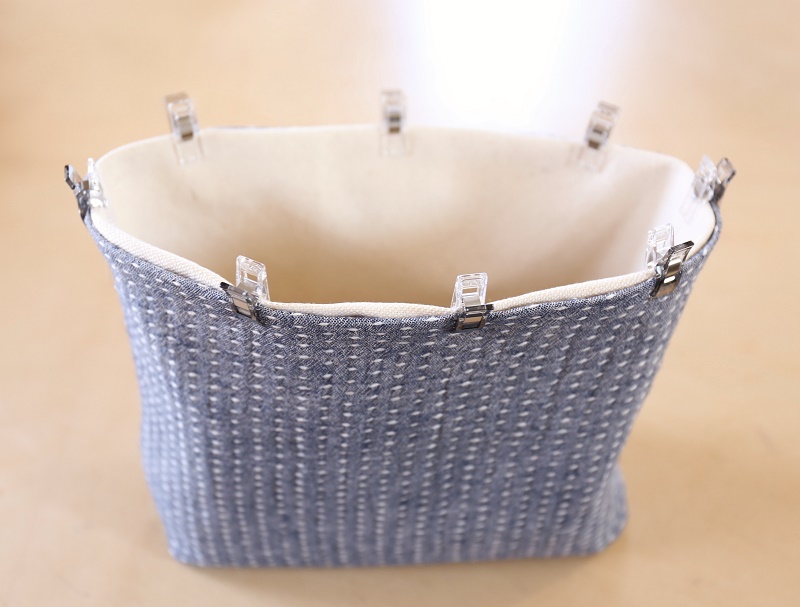 柔らかくふわっと厚みもあるので、丁寧にゆっくり針を進めていくとよれずにきれいに縫うことができます。レザーハンドルは手縫いで縫い付けますが、糸が渡って内側にも見えるので、針を出す位置を意識してきれいに縫い進めてください。