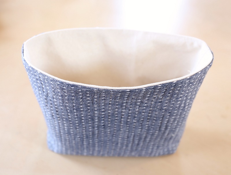 刺し子風ということで、和の雰囲気もあり、自然でオシャレな印象です。シックな色合いも活かして、和にも洋にも合わせられる小ぶりなバッグを作りました。