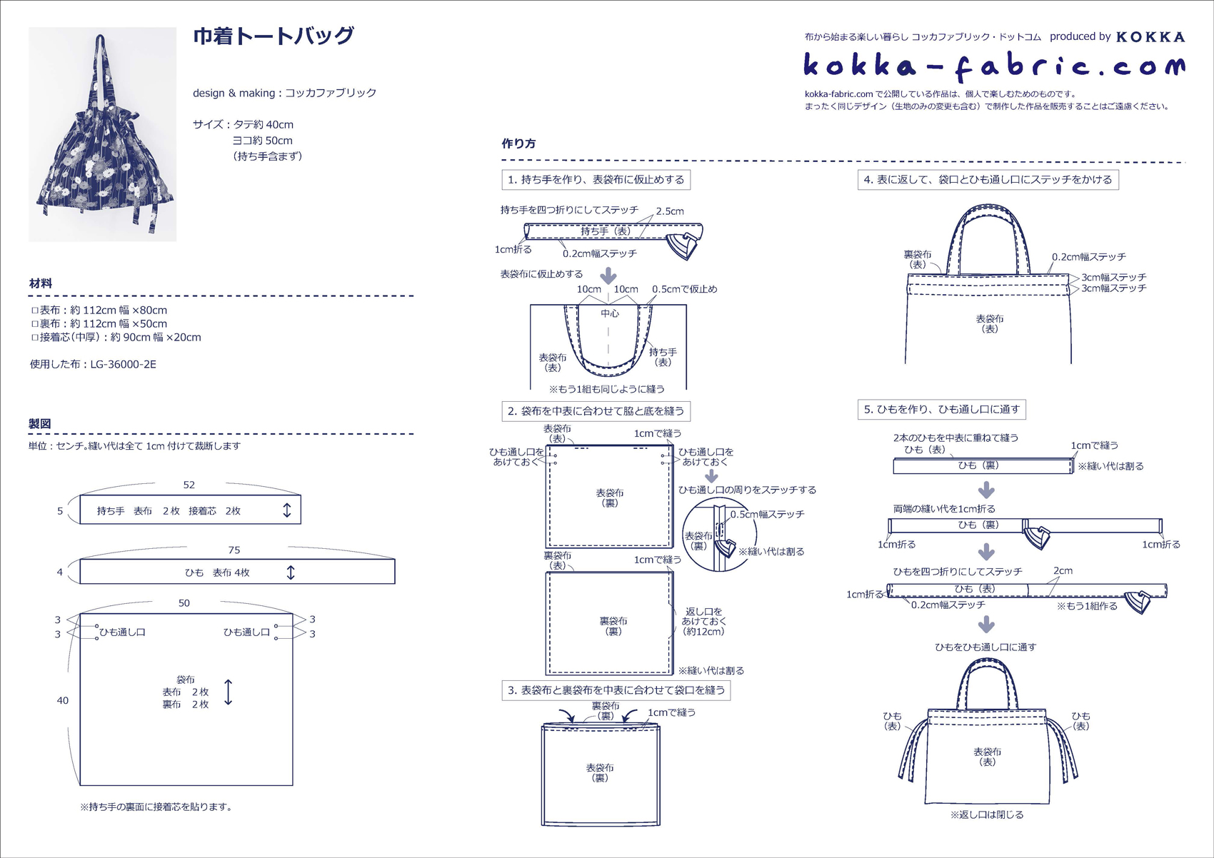 リボンできゅっと結ぶ可愛らしいフォルムの巾着トートバッグです。使った布は「ちりめん」シリーズの花柄。浴衣などに合わせてもいいですね。ポリエステル100%。