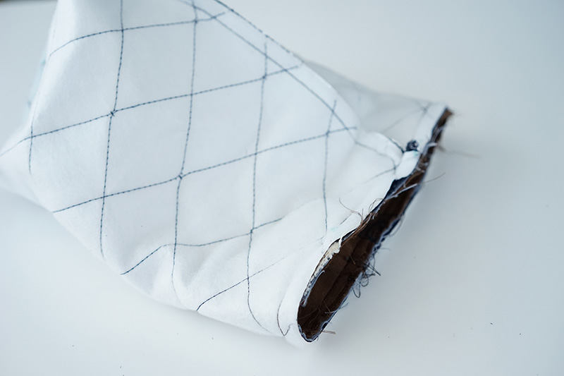 表袋と同様に裏袋を縫います(側面に返し口をあけておきます)。
