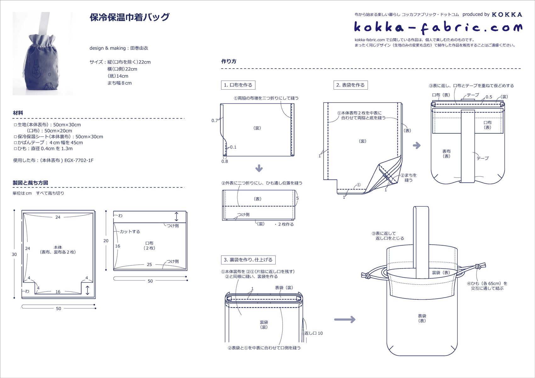 KF:田巻さん、どうもありがとうございました!保冷保温巾着バッグ の作り方プロセスも田巻さんに撮影していただきましたので、ぜひ、作り方シート(PDF)と合わせて参考にしてくださいね。