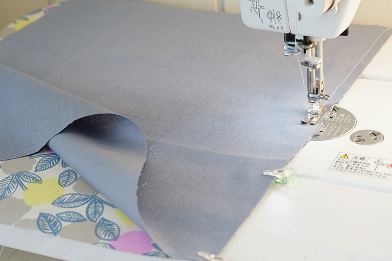 表布と裏布を中表に合わせ、口側を縫います(反対側も同様)。