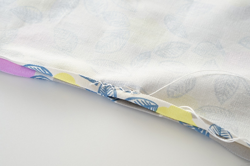 ひも通し口部分の縫い代は、裏側に折って縫いとめておくと仕上がりがきれいです。