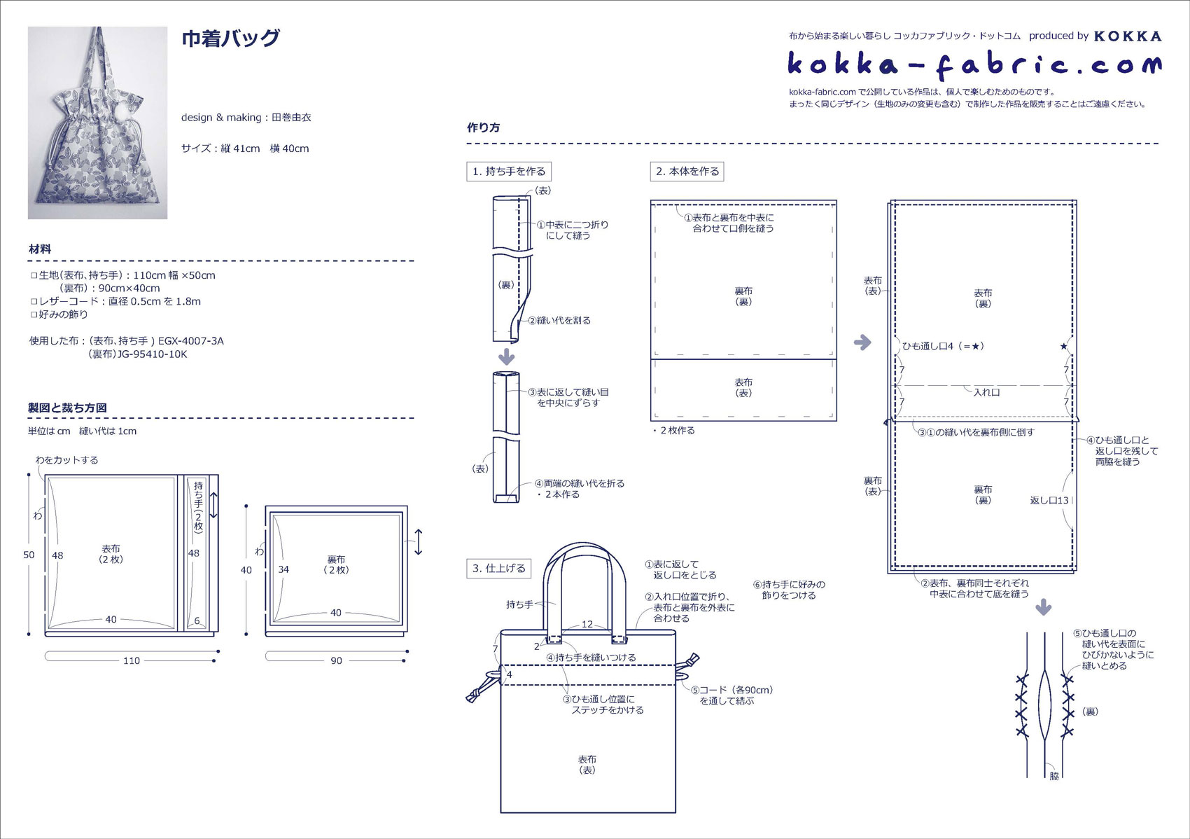 KF:田巻さん、どうもありがとうございました!巾着バッグの作り方プロセスも田巻さんに撮影していただきましたので、ぜひ、作り方シート(PDF)と合わせて参考にしてくださいね。