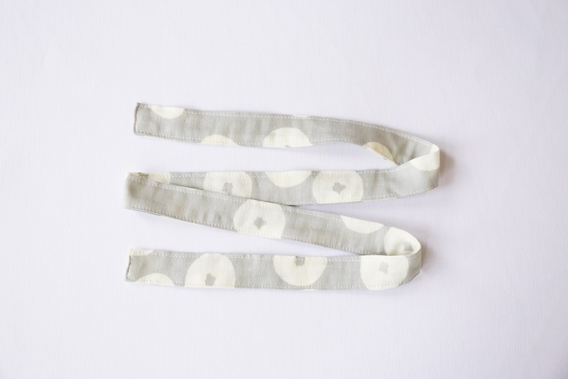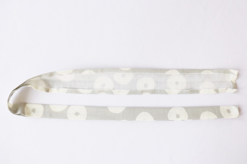 ひも布の全辺を1cm折ってから、半分に折り、四角く縫います。